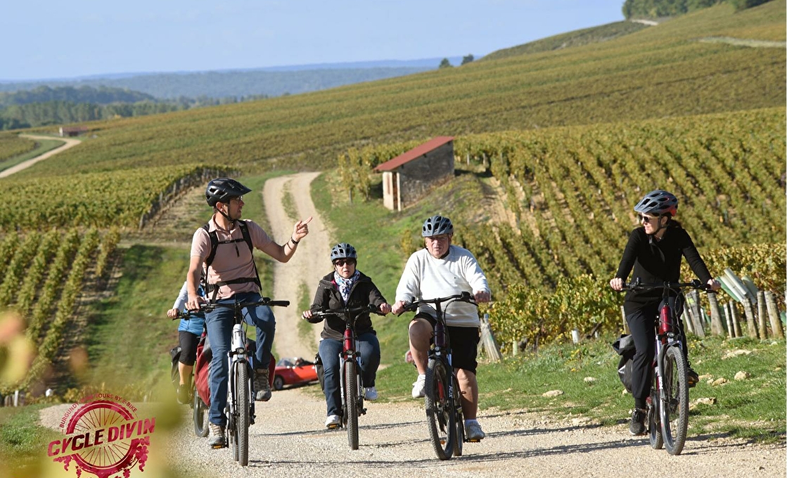 Une petite pause à la fois gourmande et sportive ça vous tente ? Alors foncez en direction de notre belle colline éternelle de Vézelay sur laquelle vous pourrez rencontrer Greg le propriétaire de Cycle Divin. Passionné par notre région, ce moniteur de vélo, diplômé dans le domaine de l’œnotourisme, saura vous transmettre son expérience et son savoir avec passion et pédagogie. À ses côtés, vous sillonnerez les chemins du Morvan et les sentiers viticoles pour partir à la découverte des trésors naturels et patrimoniaux de notre destination. Entre amis, vous pédalerez (avec assistante électrique bien sûr !) cheveux au vent tout en apprenant l’histoire des vignobles de Vézelay, leur singularité et leur authenticité. Entre découvertes surprenantes et dégustations de savoureux produits locaux, tous vos sens seront comblés ! Attention ! N’oubliez pas de réserver votre petite escapade en préparant votre séjour.