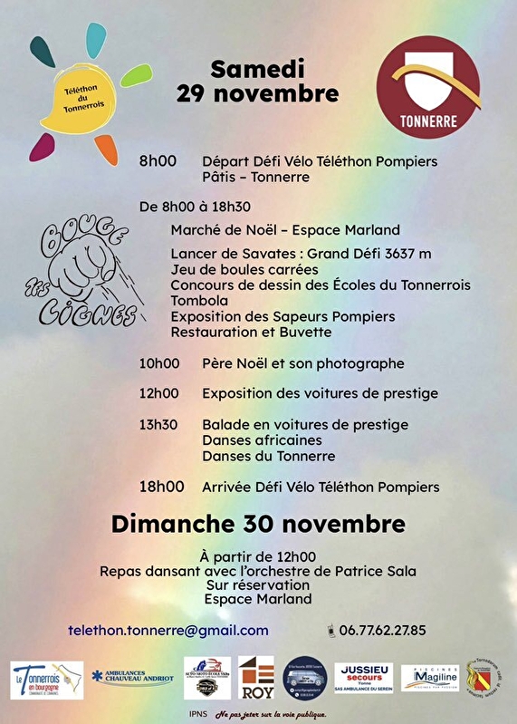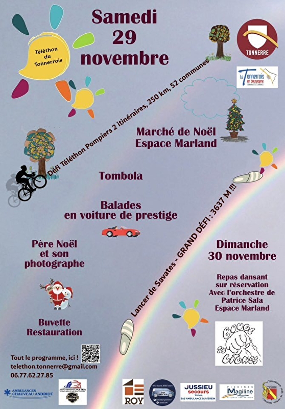 Découvrez le programme des animations proposées dans le cadre du Téléthon à Tonnerre les 29 et 30 novembre.