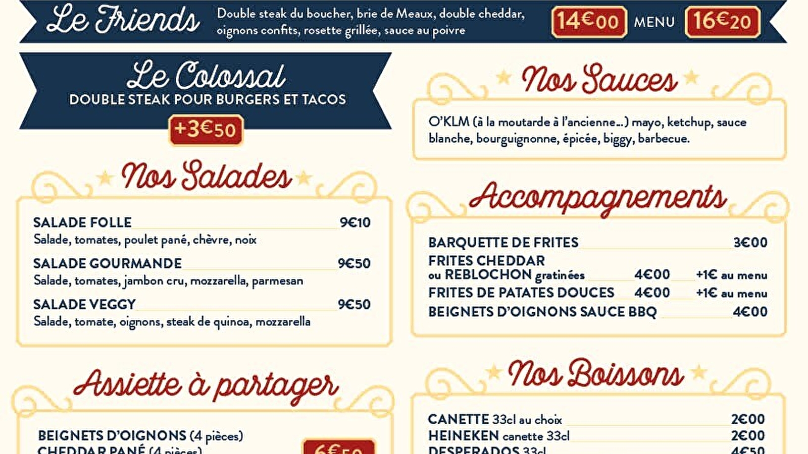 - Menu adulte (Menu Burger) : 13€ - 14€