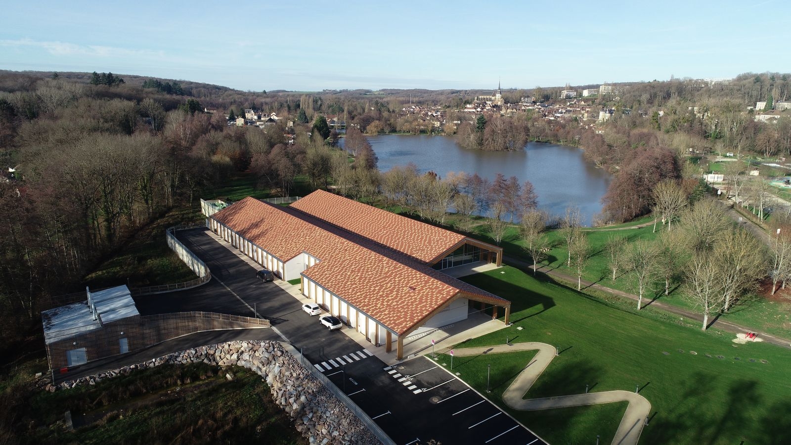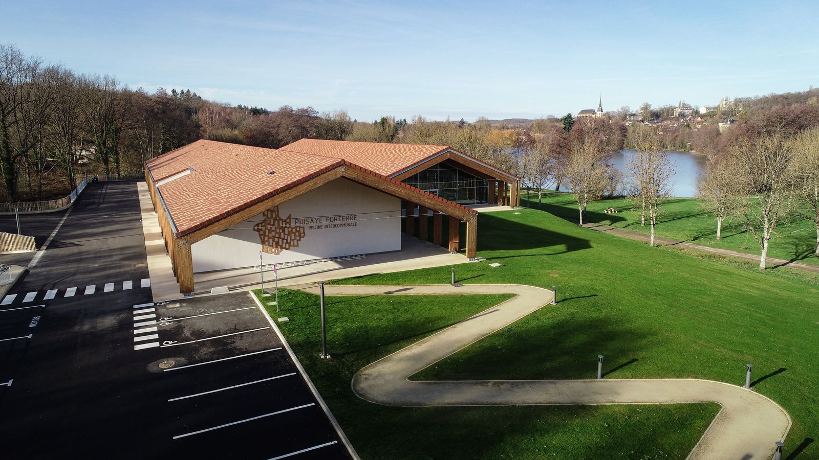 Situé à Toucy, dans l’Yonne, le centre aquatique de la communauté de communes de Puisaye-Forterre vous accueille toute l’année dans un cadre chaleureux, contemporain et en harmonie avec le paysage local. Son architecture inspirée, des longères régionales, mêle avec élégance bois, tuiles plates et larges ouvertures sur la promenade de l’étang.