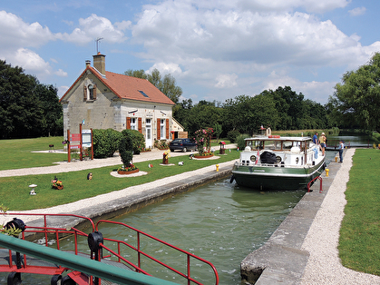 Pour votre prochaine virée entre copains, vous avez relevé le défi de devenir marin d’eau douce ?! Au départ de la base fluviale de Migennes, pas besoin de permis. À votre arrivée, vous êtes pris en charge par un instructeur qui vous explique les rudiments de conduite…C'est aussi simple que ça ! Oubliez les talons : optez pour des chaussures anti-antidérapantes. Pensez aux indispensables crème et lunettes solaires et à vous la découverte du canal de Bourgogne, incontournable en Serein et Armance. Autrefois voie marchande, cette belle artère aquatique arbore un trésor naturel et architectural qui se découvre au fil de l’eau. Commencez par faire le plein de victuailles et de produits frais au marché à la ferme de Bouy Vieux (si vous arrivez le 3e vendredi du mois). Et en route pour une micro-aventure qui va transformer votre rapport au temps : vous avancez lentement au gré des écluses, des rencontres et des visites… Comme celles, à Brienon-sur-Armançon, du lavoir de la Poterne, du singulier Théâtre Perché niché sous les toits et de l’huilerie artisanale bicentenaire toujours en activité… Direction Saint-Florentin que vous atteignez en empruntant un pont-canal à cinq arches uniques sur le linéaire du canal. Débarquez dans cette ancienne ville forteresse pleine de charme : des maisons à pans de bois coloré qui s’enroulent autour d'une église aux dimensions hors normes. En sortant, une pause café s’impose près de la fontaine aux Dragons avant de monter au sommet de la butte du Prieuré. Tout là-haut, une vue très photogénique s’offre au visiteur : une mystérieuse tour des cloches, des toits de tuiles en cascade ! En redescendant, traversez le jardin de l’Octroi qui se mire dans les eaux de l’Armance. Et pourquoi ne pas vous octroyer un sauna, un hammam et/ou quelques longueurs au centre aquatique Le Flow ?