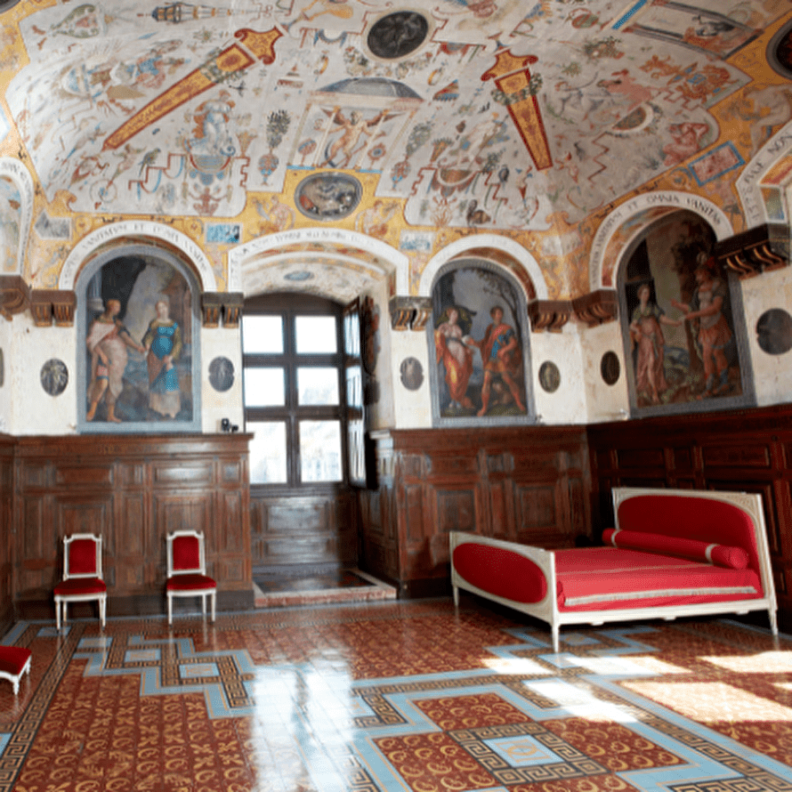 Un décor rarissime et foisonnant, attribué aux plus grands maîtres Italiens, Flamands et Bourguignons des XVIe et XVIIe siècles, le raffinement des appartements, ses peintures murales, ses plafonds à caissons polychromes et sols en mosaïque.