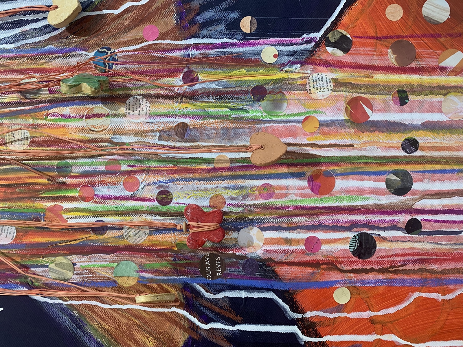 Dessins, toiles, cartons, papier, sculp'terres, fils. L’artiste invite à découvrir un univers singulier, nourri par les arts premiers et l'esthétique rituelle. Un travail plastique essentiellement orienté vers la transformation, où chaque œuvre redonne une nouvelle allure à ce qui d'habitude se jette, se cache,s'oublie.