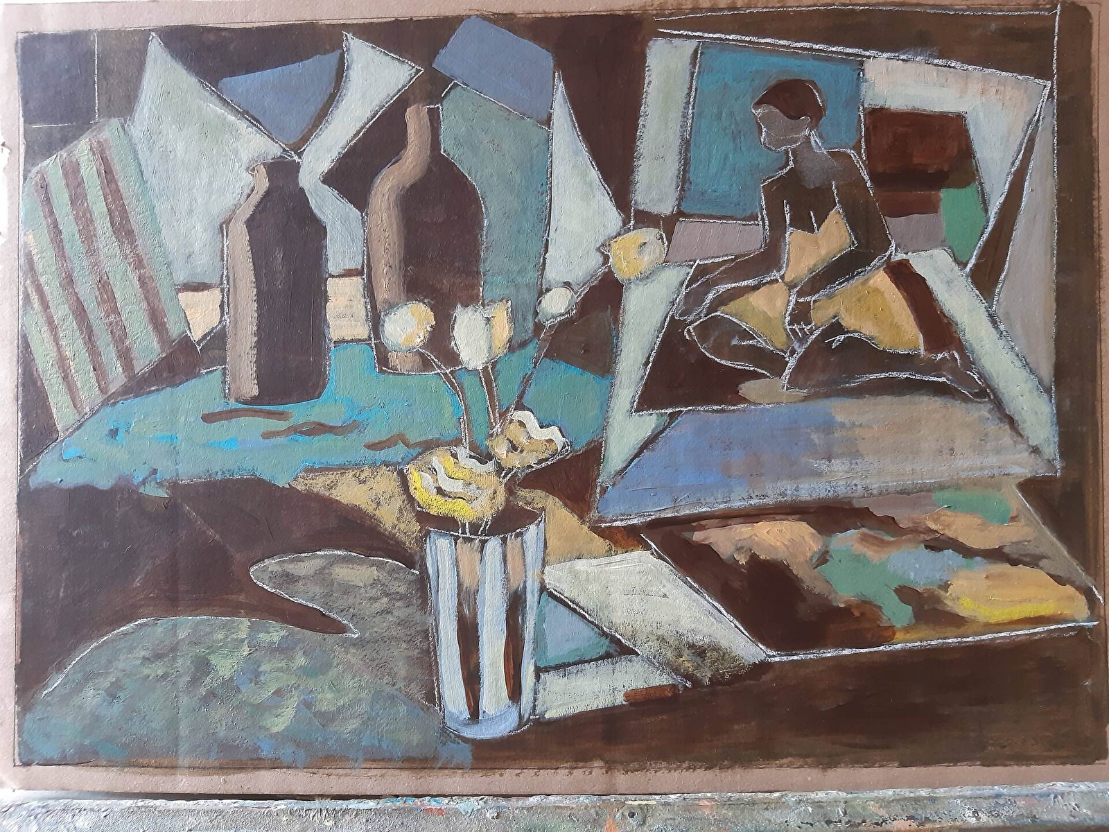 Josette Morane nous présente des natures " mortes", comme on dit, mais tellement dynamiques et, finalement, vivantes. Dans ses œuvres teintées de cubisme, les couleurs se répondent, les lignes s'entrecroisent sans jamais se heurter, les plans s'équilibrent et l'on se sent bien dans ses tableaux.