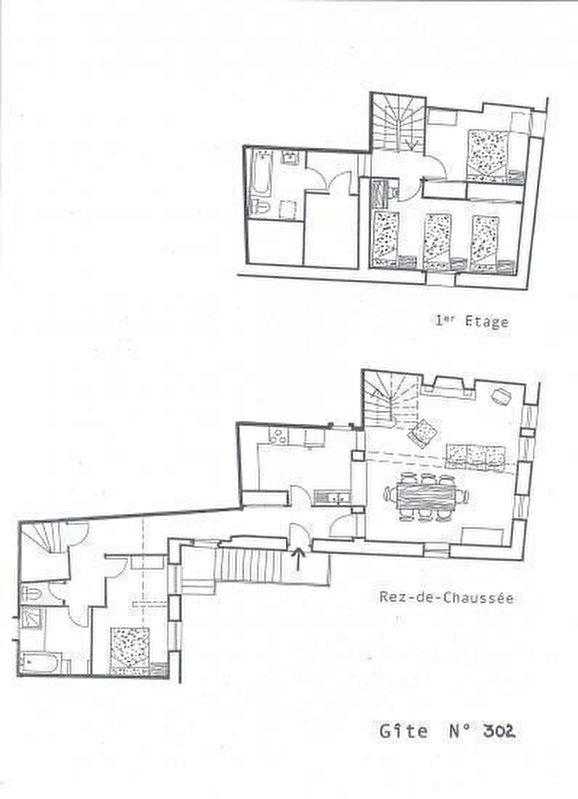 3 chambres (2 lits 140, 2 lits 0,90, 1 lit 120 et 1 lit bébé). 2 salles de bain. WC