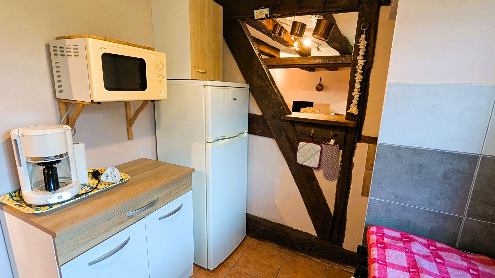 Rez-de-chaussée : cuisine et séjour séparés (1 clic-clac 2 personnes). 2 chambres : 1 lit 140x190, 2 lits 90x190, 1 lit bébé. Salle de bain. WC. Cheminée (stère bois en supplément 33€). Pas de wifi.