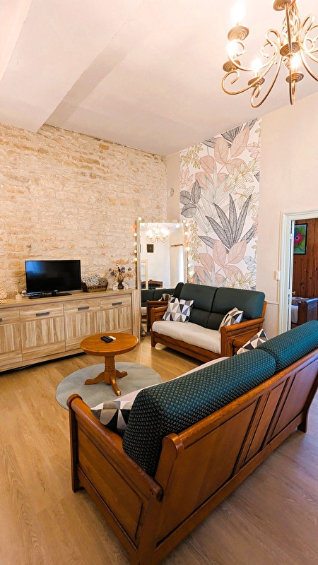 Maison dans un ensemble de bâtiments. Rez de chaussée: cuisine, séjour, 1 chambre (1 lit 140x190), salle de bain (baignoire), WC indépendant. Équipement bébé : chaise haute, lit bébé et pot.