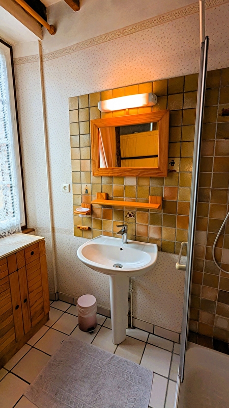 1er étage : 1 chambre avec 3 lits 120 et 1 chambre avec 2 lits 90. 1 Salle d'eau entièrement rénovée , et 1 WC indépendant.