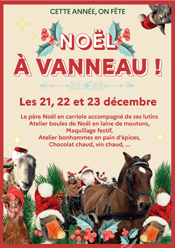 Au Moulin de Vanneau, venez fêter Noël en famille. Le père Noël vous promènera en carriole avec ses lutins pour la photo souvenir, puis une petite balade avec les poneys, un atelier pour décorer votre sapin et un autre pour préparer un petit biscuit pour les gourmands!