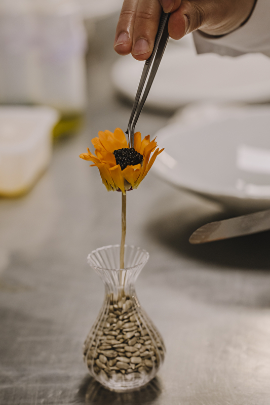 Dans notre restaurant gastronomique Erre, chaque assiette est pensée sur-mesure, à l’image de l’univers singulier que le chef Clément Vergeat et la cheffe pâtissière Marine Mateos composent à quatre mains.